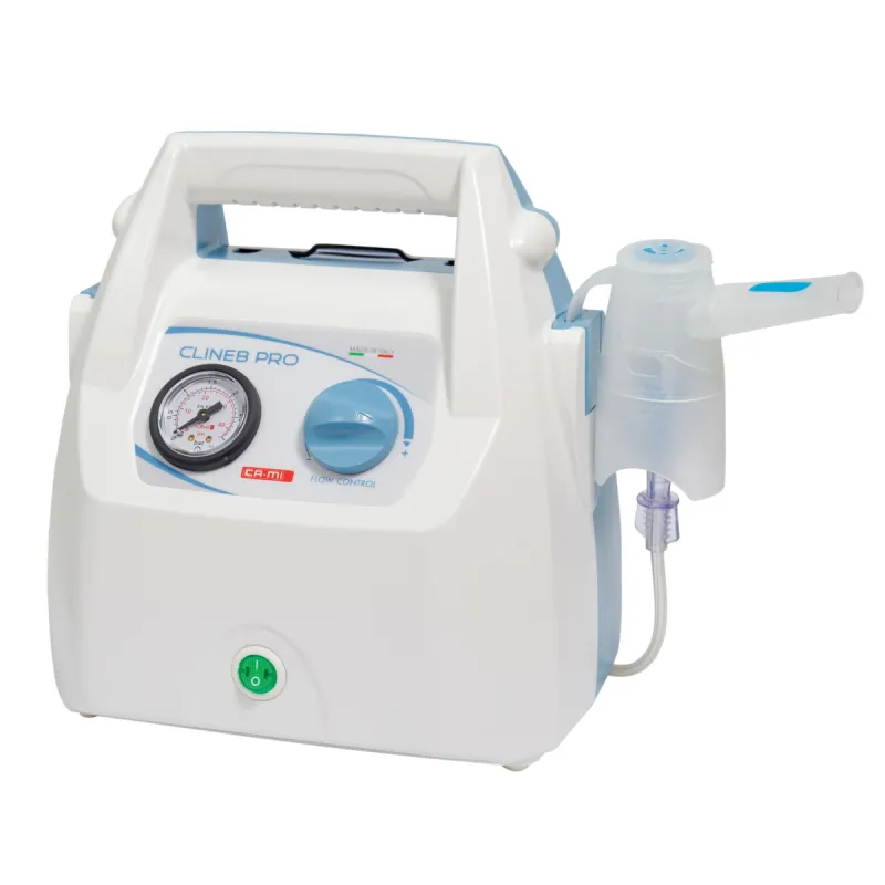 Ο νεφελοποιητής CLINEB PRO διαθέτει ρυθμιστή ροής επιταχύνοντας την εκνέφωση έως και 100%. Στο ειδικά διαμορφωμένο εσωτερικό χώρο μπορούν να αποθηκευτούν τα αξεσουάρ και τα φάρμακα, καθιστώντας τον ιδανικό βοήθημα για τις εντατικές και συνεχείς θεραπείες σε νοσοκομεία και κλινικές.