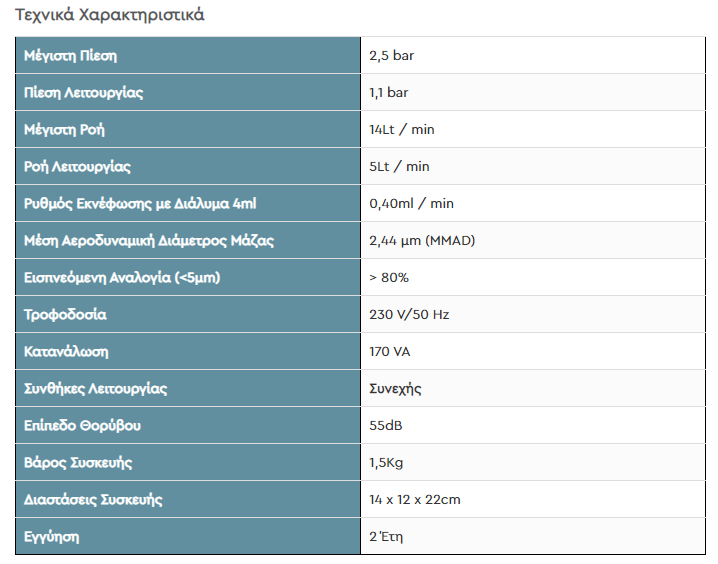 Περιέχει: μάσκα υψηλής ροής ενηλίκων και παιδική, εξάρτημα για χρήση από τη μύτη, θάλαμο εκνέφωσης υψηλής ροής και ανταλλακτικό φίλτρο