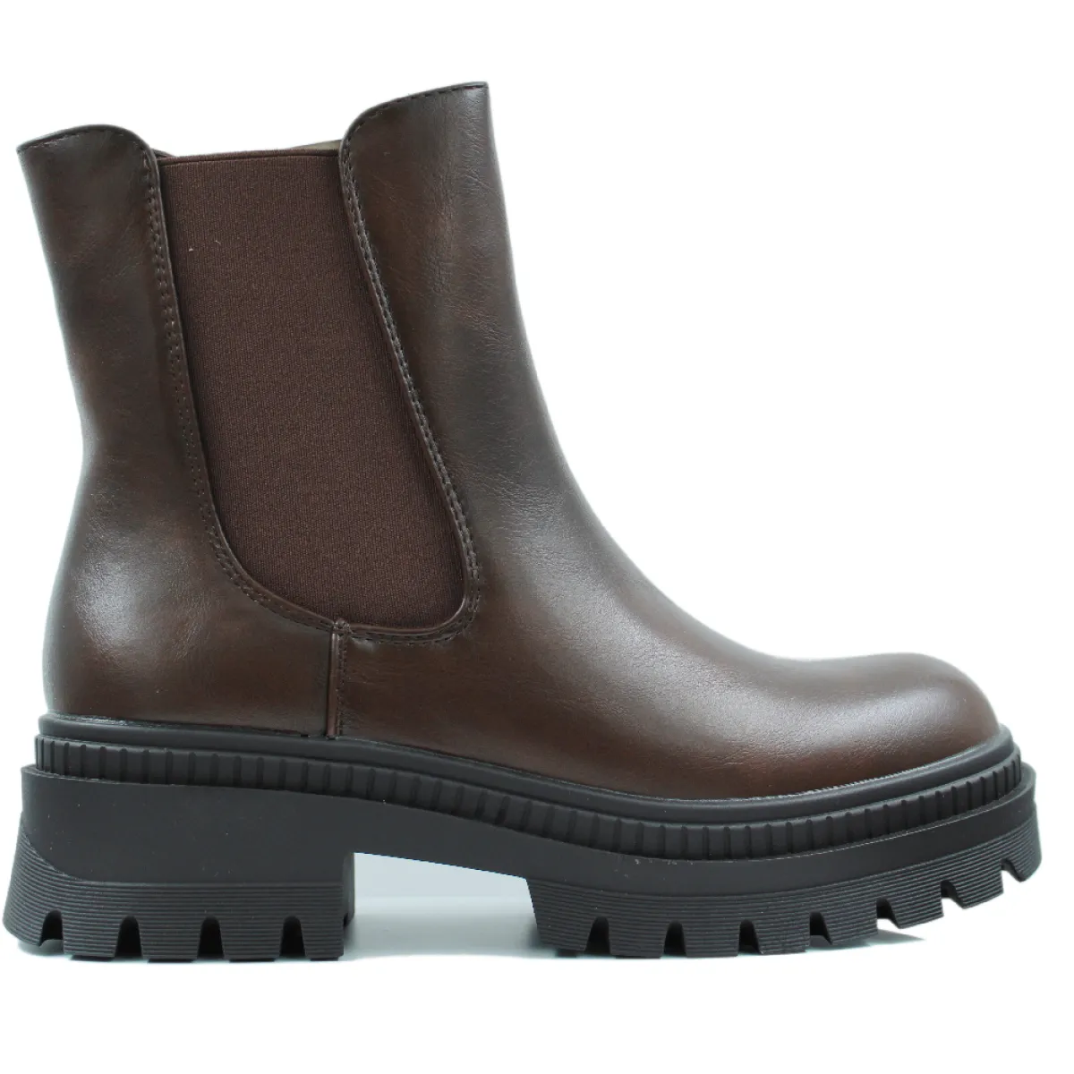 Ανατομικό Γυναικείο Μποτάκι Δερμάτινο με Λάστιχο - Καφέ 712