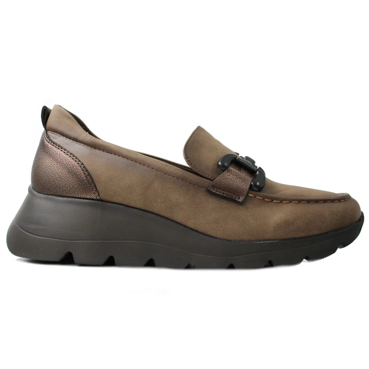 Γυναικείο παπούτσι δερμάτινο με διακοσμητική αγκράφα.