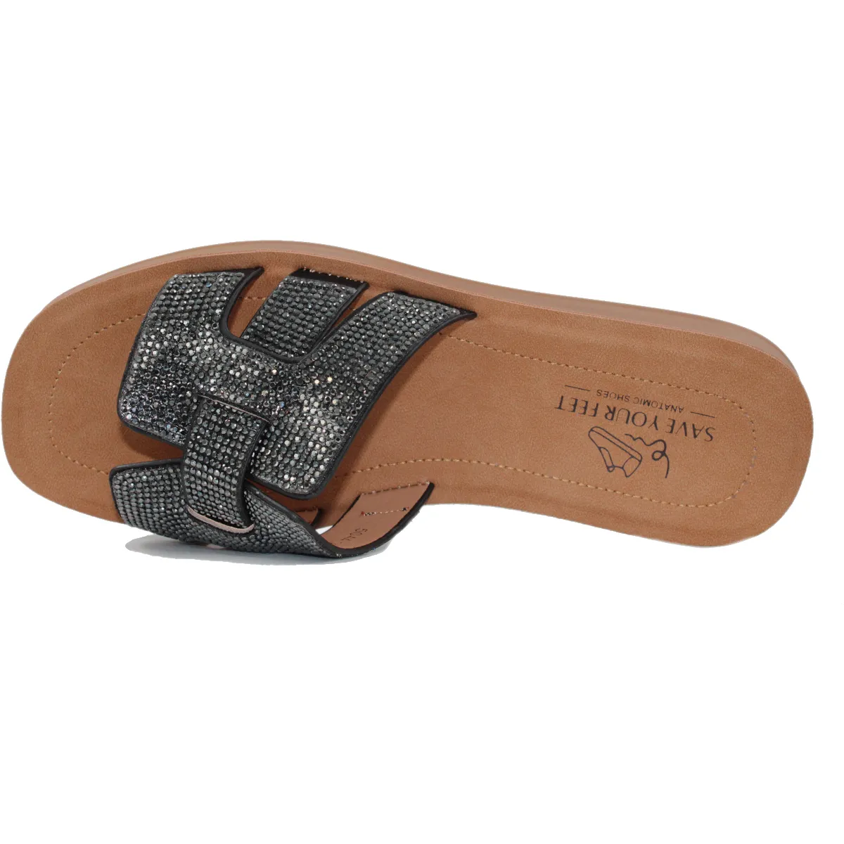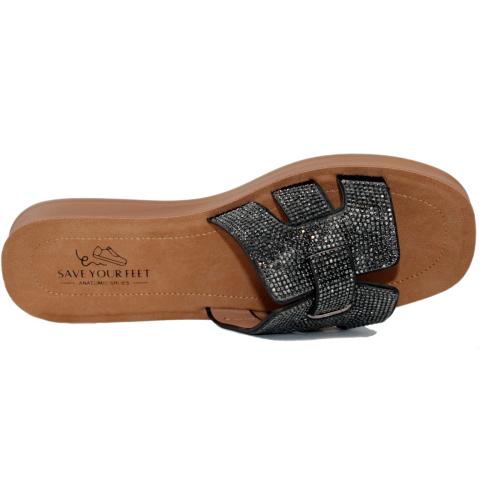 Ανατομική γυναικεία παντόφλα με στρας για εντυπωσιακές εμφανίσεις και στυλ.