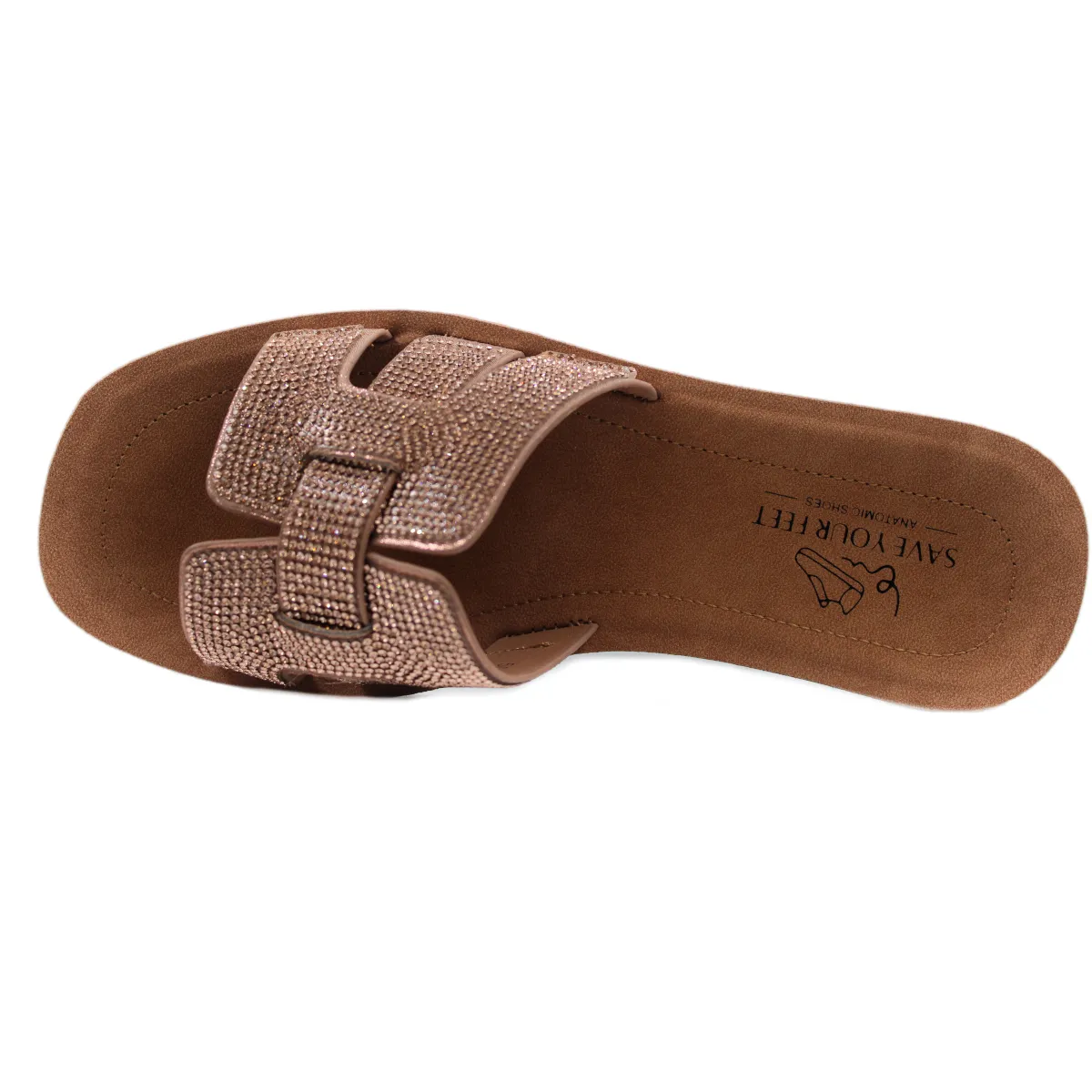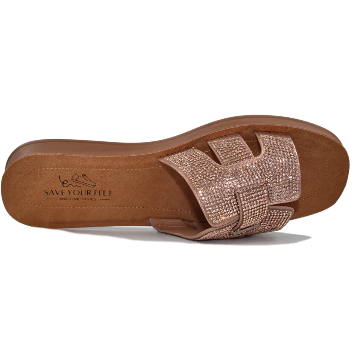 Ανατομική γυναικεία παντόφλα με στρας για εντυπωσιακές εμφανίσεις και στυλ.