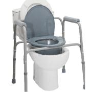 Αναδιπλούμενη τουαλέτα με πλαίσιο αλουμινίου και πλαστικό κάθισμα. Ιδανική για χρήση μέσα στο μπάνιο για ασθενείς που αδυνατούν να κάνουν μπάνιο μόνοι τους.