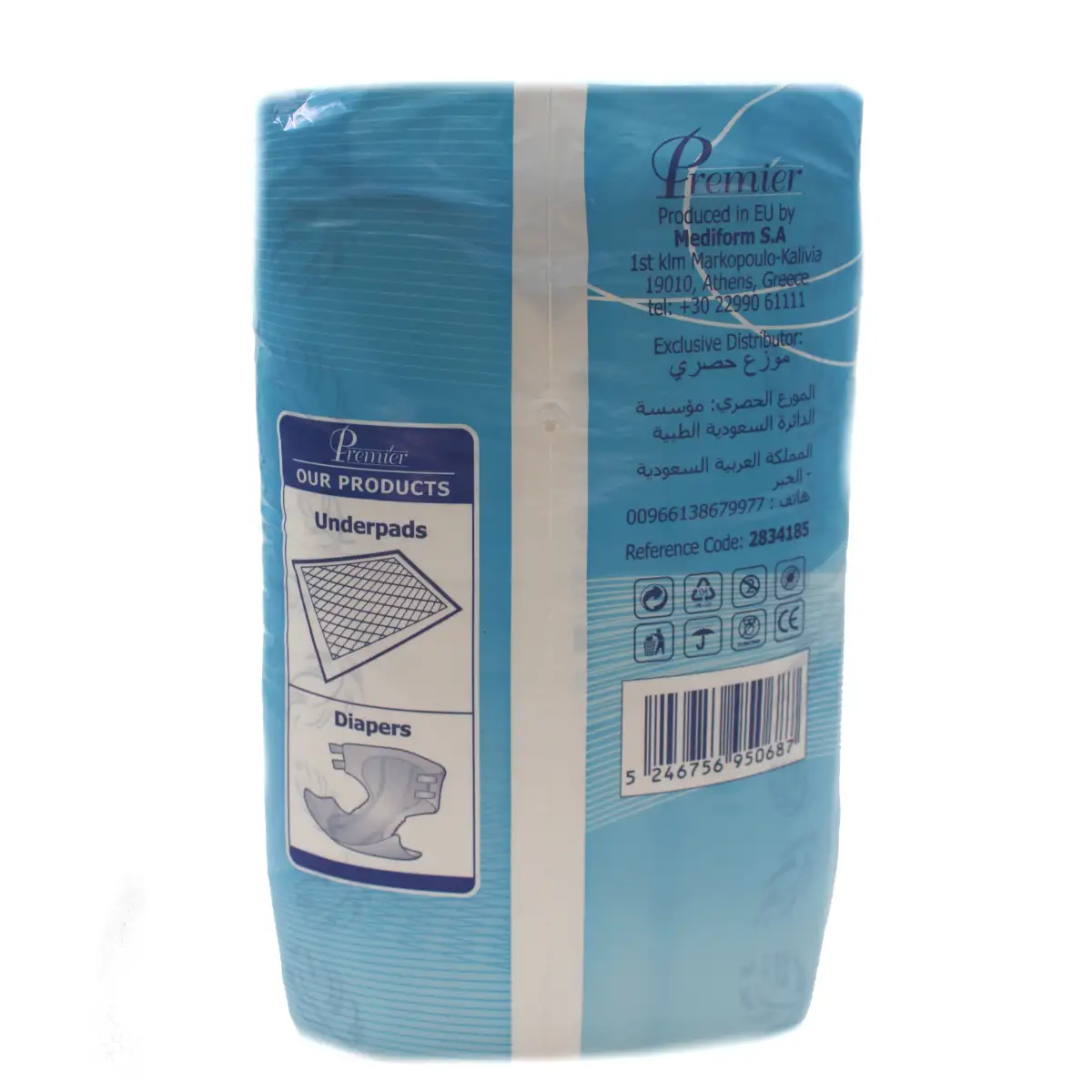 Η πάνα ακράτειας PREMIER κατάλληλη για συχνή χρήση προσφέρει σε οικονομική συσκευασία απορροφητική προστασία ώστε να μην ανησυχείτε για διαρροές και ατυχήματα ενώ το περιμετρικό πλευρικό υφασμα προσφέρει καλύτερη τοποθέτηση γι'αυτό το σκοπό.Χαρακτηριστικά η πάνα PREMIER είναι: