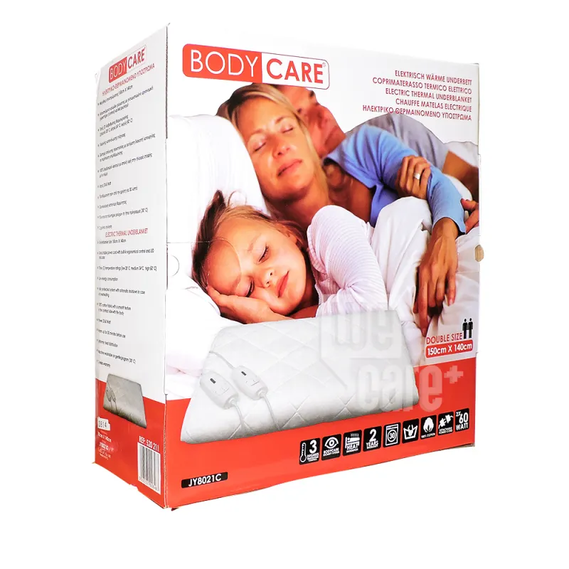 Το ηλεκτρικό θερμαινόμενο υπόστρωμα Body Care χρησιμοποιείται για την εύκολη και αποτελεσματική θέρμανση του ανθρώπινου σώματος σύμφωνα με τις Διεθνείς και Ευρωπαϊκές νόρμες. Η ισορροπημένη κατανομή θερμότητας που επιτυγχάνεται με την χρήση του διατηρεί την θερμοκρασία του σώματος στα επιθυμητά επίπεδα καθ'όλη τη διάρκεια του ύπνου. Η ενεργοποίηση και απενεργοποίηση της θερμοφόρας επιτυγχάνεται από τον διακόπτη ασφαλείας, τεσσάρων θέσεων. Στην κλειστή θέση (OFF) η θερμοφόρα είναι απενεργοποιημένη ενώ οι υπόλοιπες τρεις διαβαθμίσεις (1-3) επιτυγχάνουν την επιθυμητή θερμοκρασία. Πιο συγκεκριμένα, επιλέγοντας τη θέση 1 επιτυγχάνουμε χαμηλή θερμοκρασία, στην θέση 2 μέτρια θερμοκρασία και στη θέση 3 υψηλή θερμοκρασία. Διαθέτει προηγμένης τεχνολογίας αισθητήρα - θερμοστάτη προκειμένου να ρυθμίζονται αυτόματα και να παραμένουν σταθερά τα επίπεδα θερμοκρασίας που προεπιλέχθηκαν. Ταυτόχρονα εμποδίζεται η υπερθέρμανση του υποστρώματος, διασφαλίζοντας την αυτόματη απενεργοποίηση του σε περίπτωση σφάλματος. Το υπόστρωμα στην πλευρά επαφής του με το σώμα διαθέτει ένα ιδιαίτερα απαλό υλικό προσδίδοντας μια ευχάριστη αίσθηση.