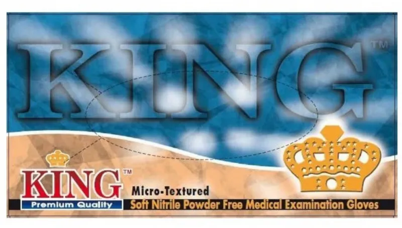 Εξεταστικά γάντια μπλε νιτριλίου KING (χωρίς latex) χωρίς πούδρα, κατασκευασμένα από 100% νιτρίλιο (χωρίς latex), αμφιδέξια, μπλε χρώματος, μη αποστειρωμένα.