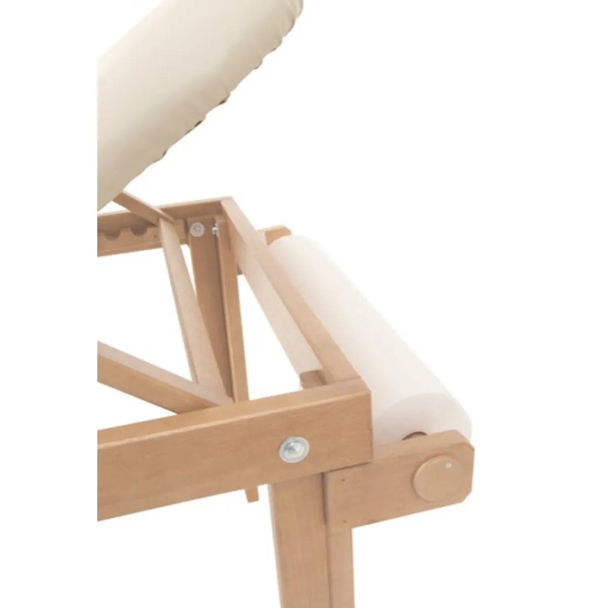 Ξύλινο εξεταστικό κρεβάτι. Διατίθεται σε μπεζ χρώμα και με το μηχανισμό του χαρτιού. Οι μοίρες κλίσης κυμαίνονται από 0- 45°
