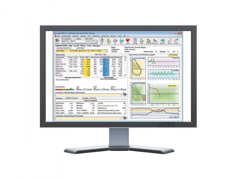 FVC, VC, MVV, PRE / POST με ένα ευρύ φάσμα επιλογής παραμέτρων