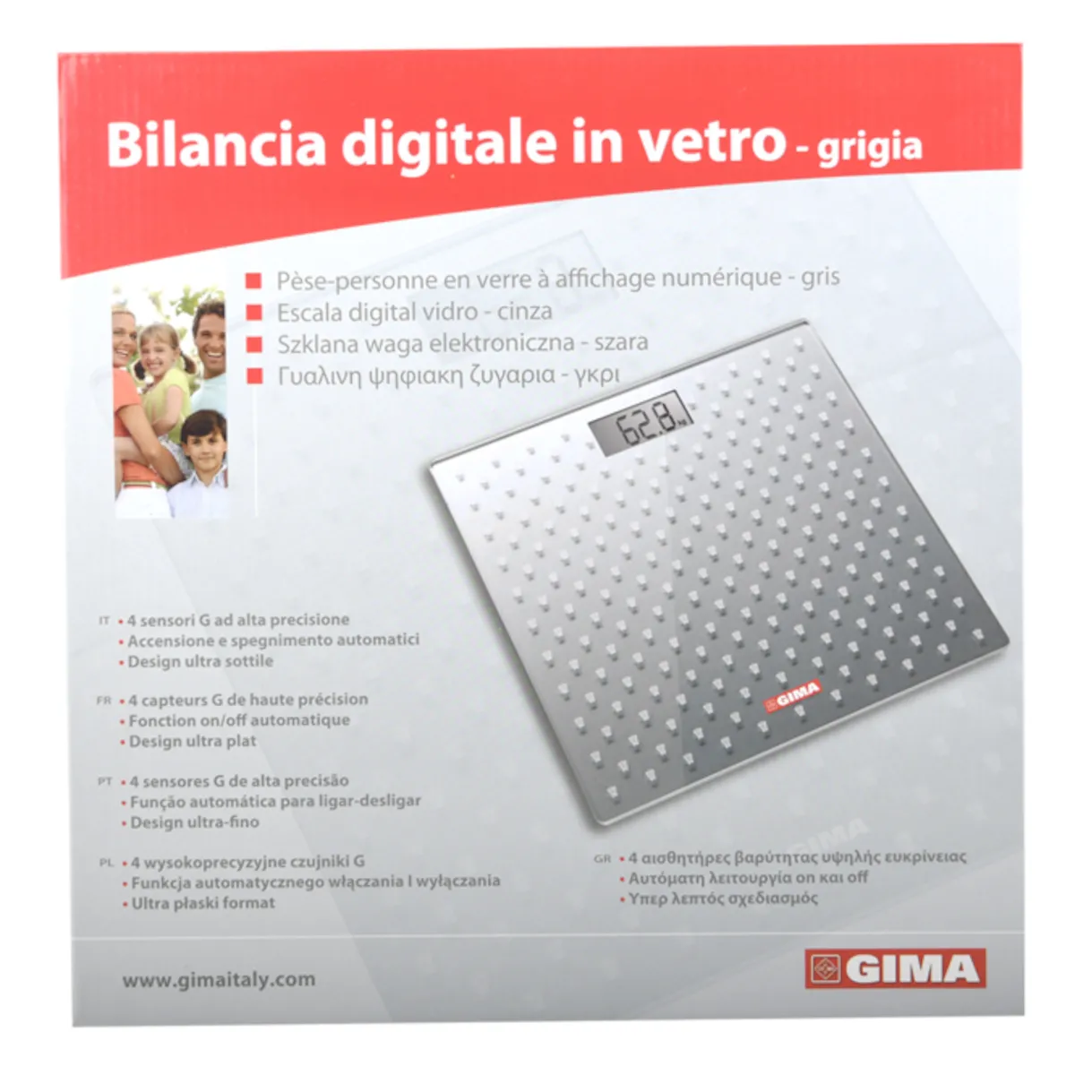 Ψηφιακή ζυγαριά ακριβείας κατάλληλη για χρήση μέσα στο μπάνιο με παχιά πλατφόρμα από γυαλί. Περιλαμβάνει 4 αισθητήρες ακριβείας.