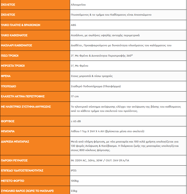 Η τροχήλατη ηλεκτρική καρέκλα ανύψωσης είναι κατάλληλη για χρήση σε εσωτερικούς χώρους και η ταχύτητα μεταφοράς είναι ≤3 km/h.
