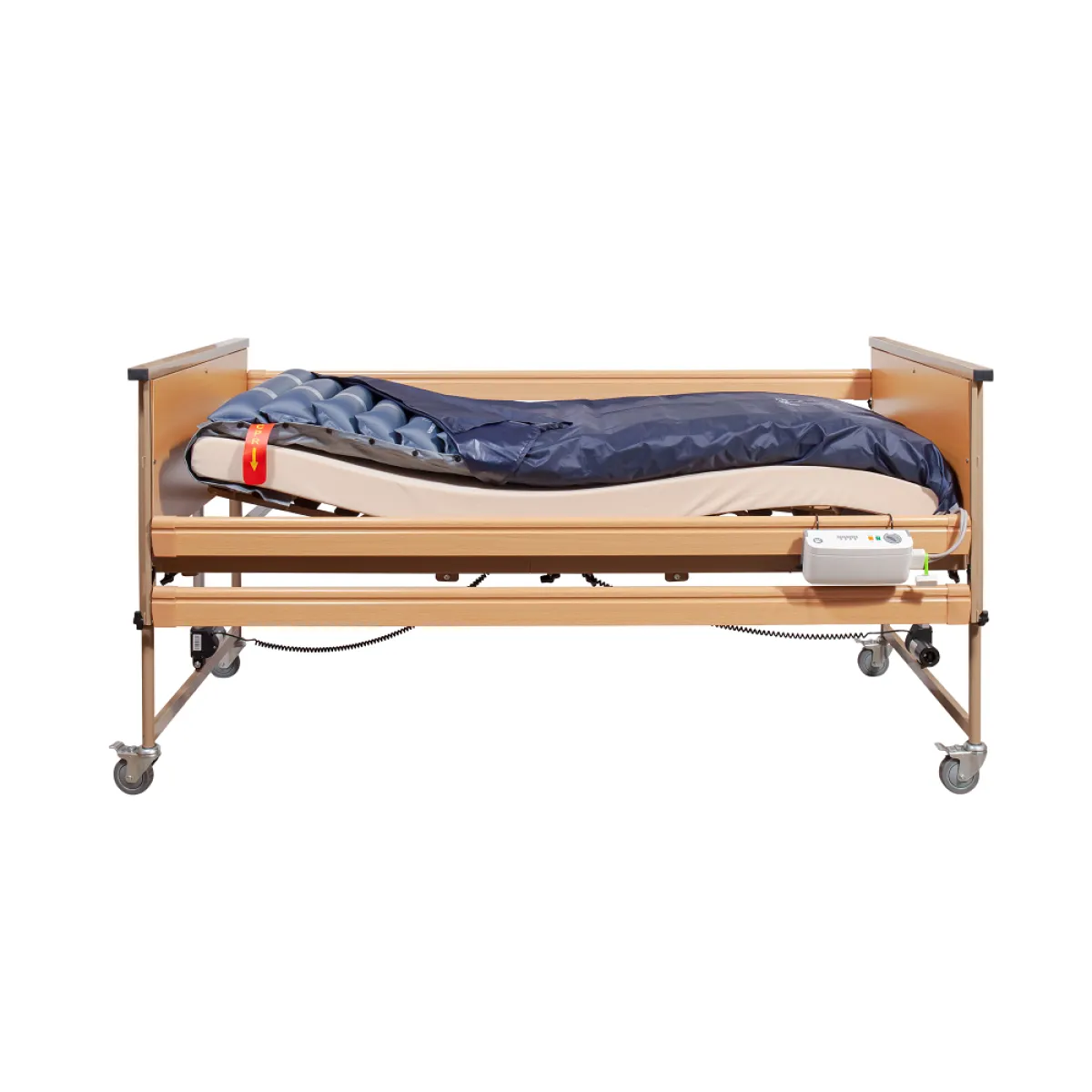 Στρώμα κατάκλισης με ραβδώσεις και αεραντλία με ρυθμιζόμενη ροή αέρα ανάλογα με το βάρος του ασθενή. Κατάλληλο για κλινήρεις ασθενείς για νοσηλεία κατ' οίκον ή νοσοκομειακή χρήση. Βοηθάει στην πρόληψη ή τη θεραπεία κατακλίσεων.