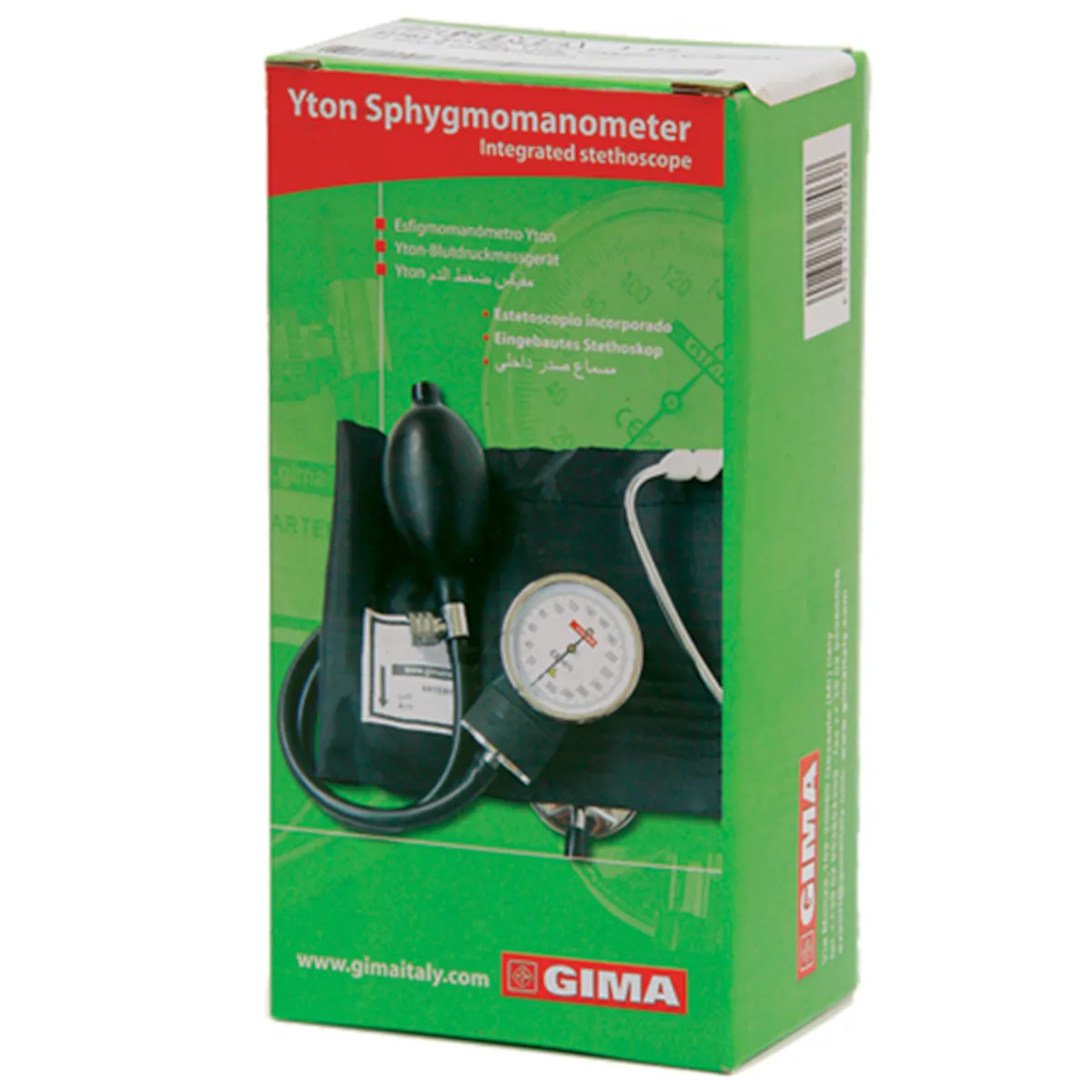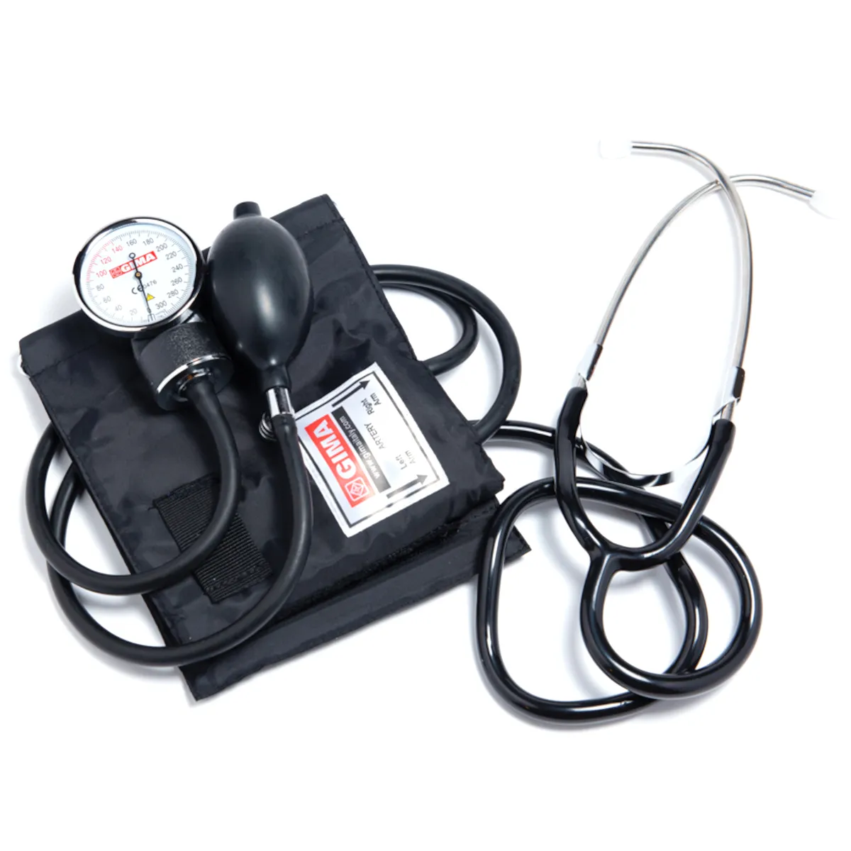 Αναλογικό πιεσόμετρο μπράτσου με ακουστικά που μετρά την αρτηριακή πίεση. Εξοπλισμένο με μια δερμάτινη μαλακή θήκη με φερμουάρ σε ένα χάρτινο κουτί.