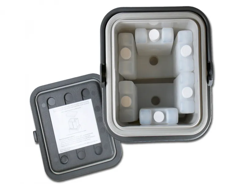 Συνοδεύεται από 8 άδειες παγοκύστες των 400 ml, κατάλληλες για ψυχρή διάρκεια ζωής 40 ωρών στους 8°C με εξωτερική θερμοκρασία 43°C χωρίς άνοιγμα.