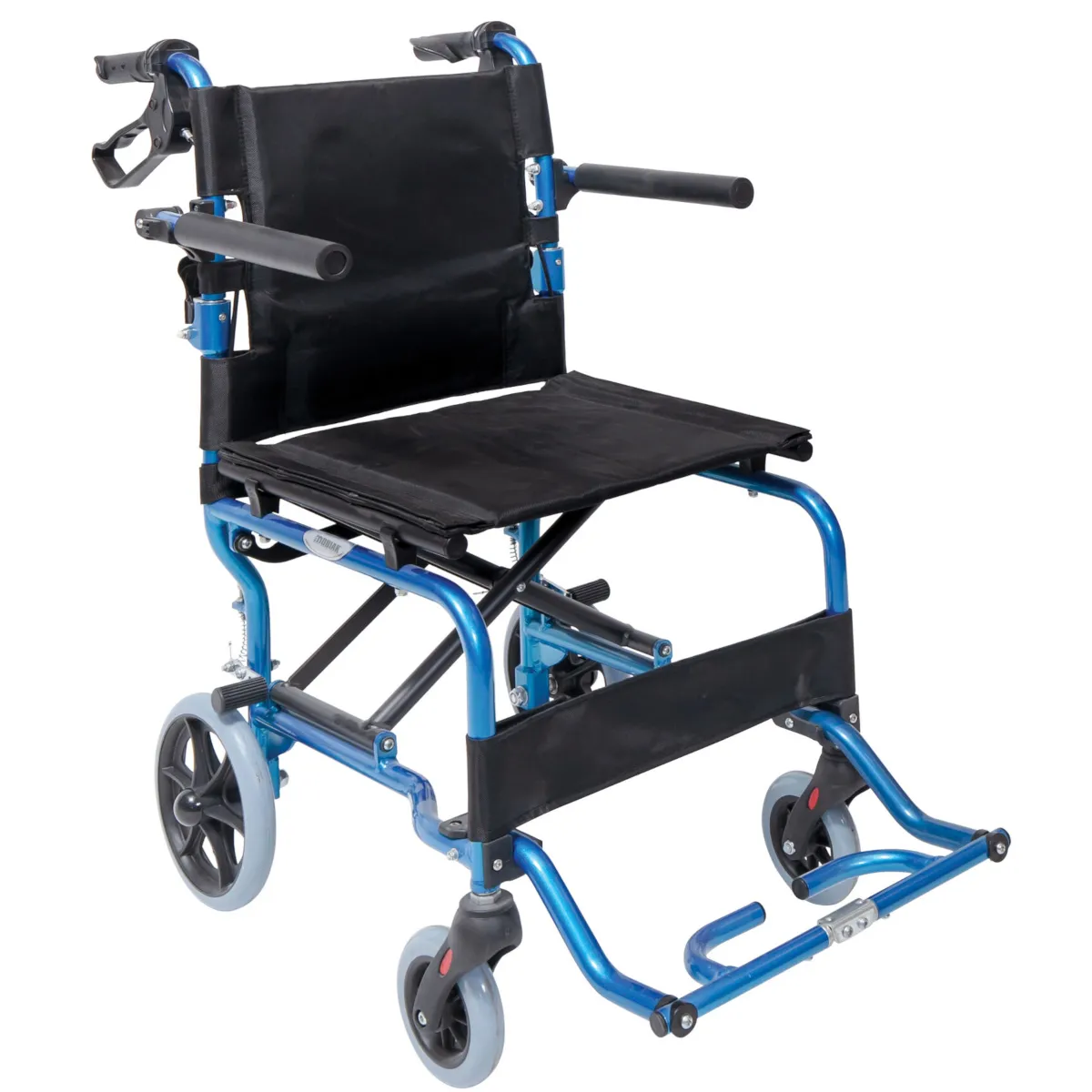Αναπηρικό αμαξίδιο μεταφοράς με σκελετό αλουμινίου πλήρως πτυσσόμενο. Το κάθισμα είναι υφασμάτινο. Με πτυσσόμενα πλαϊνά & υποπόδια και ζώνη ασφαλείας. Με συμπαγείς τροχούς. Διατίθεται σε πρακτική τσάντα μεταφοράς. Τα φρένα βρίσκονται στις χειρολαβές.