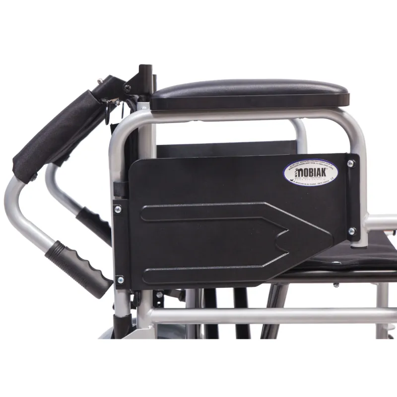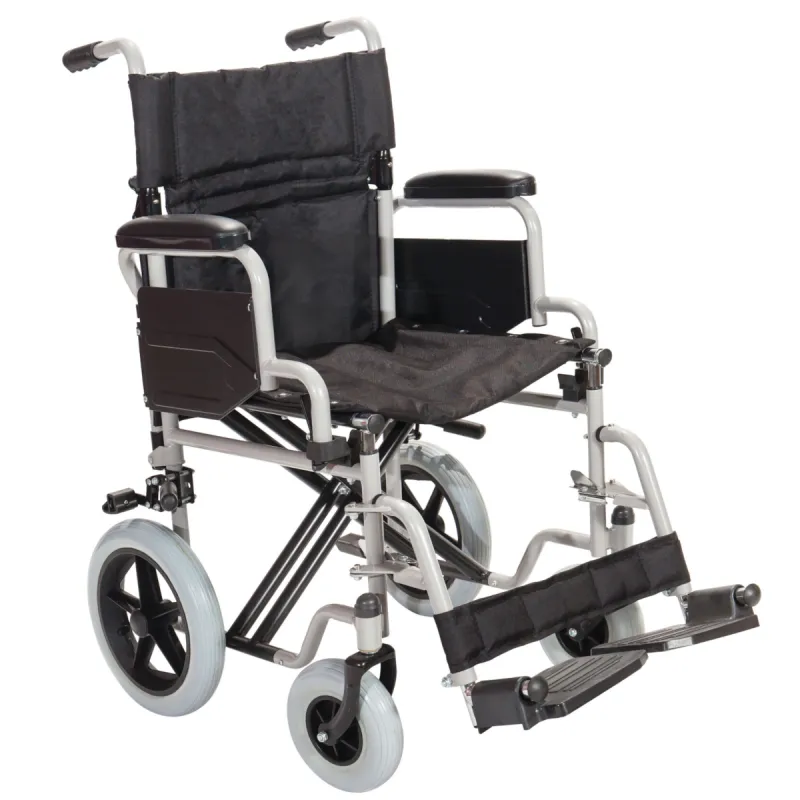 Αναπηρικό αμαξίδιο με ατσάλινο σκελετό.Τα πλαινά είναι ανυψούμενα, με PVC μαξιλαράκι και τα υποπόδια είναι  αποσπόμενα. Οι τροχοί είναι μεσαίοι και συμπαγείς με ...