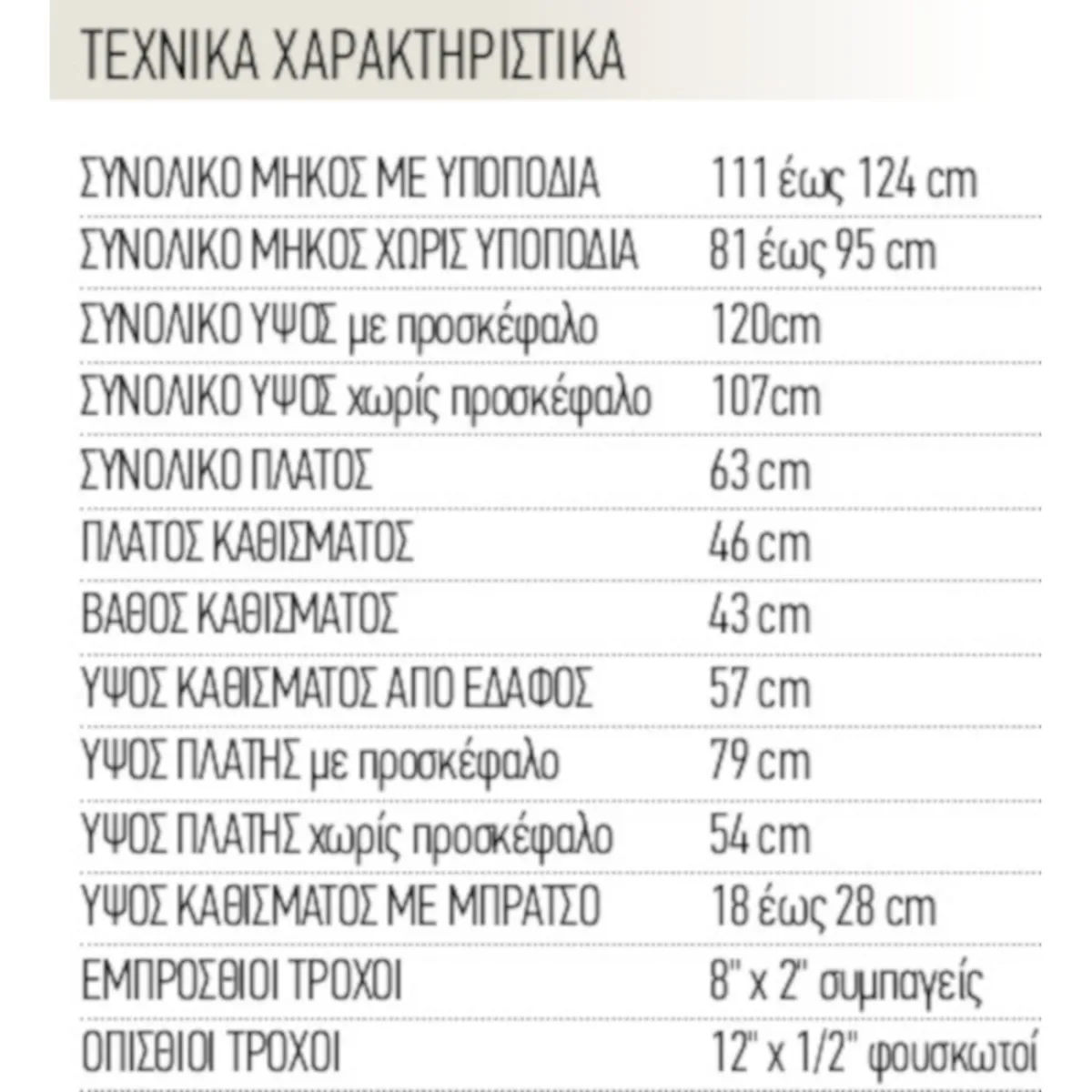 - Ύψος πλάτης με προσκέφαλο: 79cm