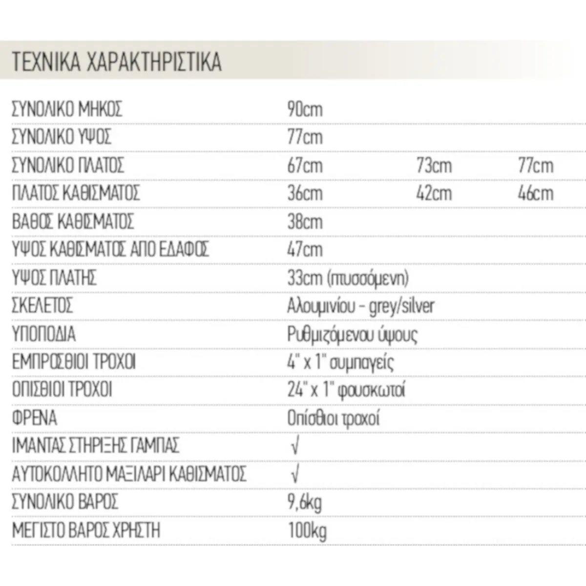 Αµαξίδιο αλουµινίου ελαφρού τύπου. Ιδανικό για άτοµα που κινούνται σε εξωτερικούς χώρους.