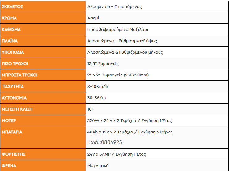 Μέγιστο βάρος χρήστη: 130kg