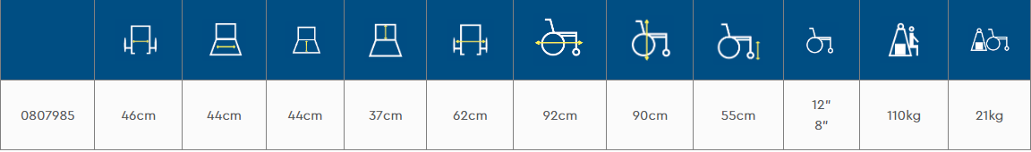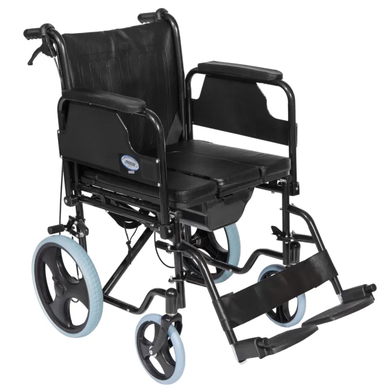 Αναπηρικό αμαξίδιο εσωτερικού χώρου με μεσαίους συμπαγείς τροχούς ( 12'' πίσω). Είναι πτυσσόμενο για εύκολη μεταφορά και εξοικονόμηση χώρου. Διαθέτει επίσης πτυσσόμενα πλαϊνά και αποσπώμενα υποπόδια. Το κάθισμα είναι δερμάτινο και αναπαυτικό με ζώνη ασφαλείας και περιλαμβάνει δοχείο με συρταρωτό κάθισμα για εύκολη χρήση. Τα φρένα βρίσκονται στις χειρολαβές.