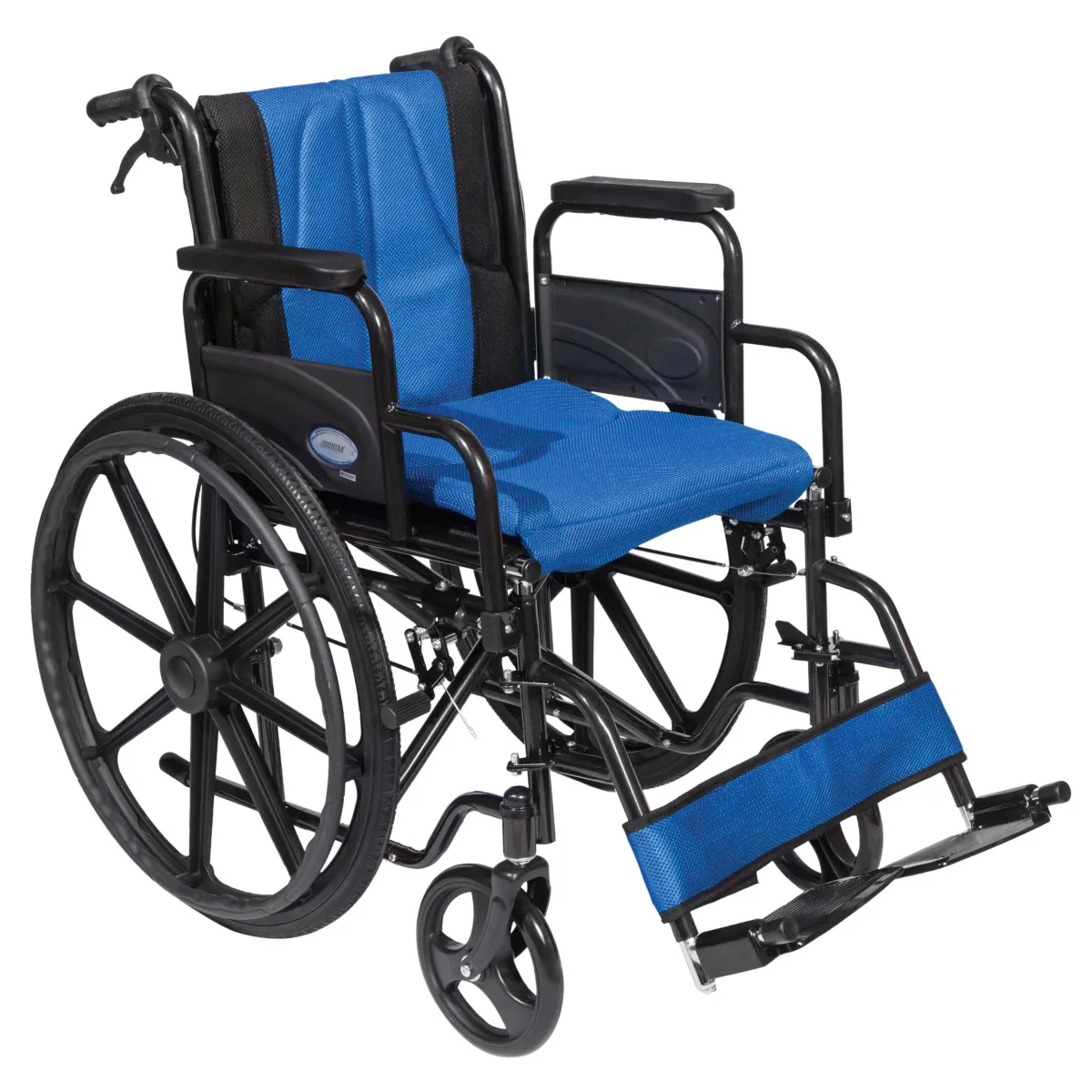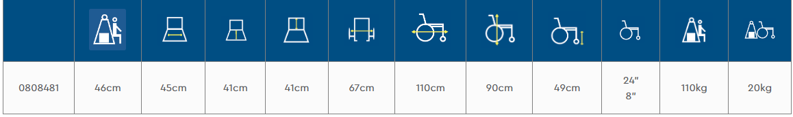 Με πτυσσόμενα πλαϊνά και αποσπώμενα υποπόδια. Διαθέτει ενισχυμένο αναπαυτικό κάθισμα με μαλακό αεριζόμενο μαξιλάρι στο κάθισμα και την πλάτη. Τα φρένα βρίσκονται στις χειρολαβές.