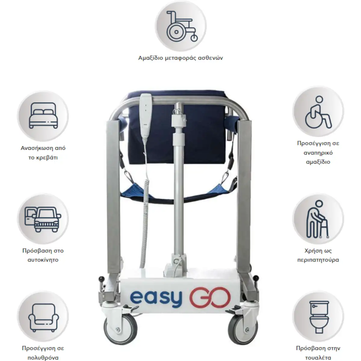 Η easyGO είναι μία ειδική ηλεκτρική τροχήλατη καρέκλα, με μοναδικό σύστημα ανύψωσης των ασθενών.