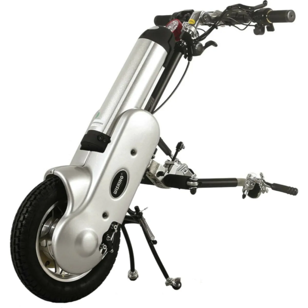 Ηλεκτρικό τρέιλερ συµβατό µε τα περισσότερα χειροκίνητα αµαξίδια. Εργονοµικό και πτυσσόµενο τιµόνι για εύκολη αποθήκευση.  Η σύνδεση και αποσύνδεση µε το αµαξίδιο ...