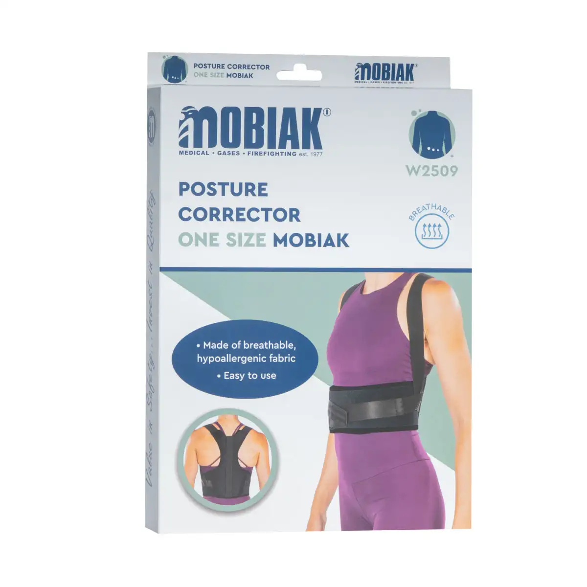Η ζακέτα κυφώσεως είναι κατασκευασμένη από αεριζόμενο, υποαλλεργικό ύφασμα και είναι εύκολο στη χρήση της.